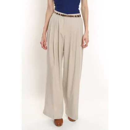 Break away from the trend with these elegant pleat front pants. The high waistline and wide leg creates a feminine sihouette that's flattering on any figure. Pair with d'Orsay pumps and a waist belt.