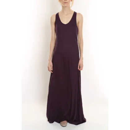 Racer back maxi dress. Pull over style. Loose fitting. Straight skirt falls to floor. Viscose.